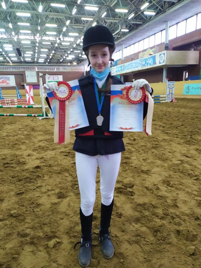 На маршруте №2 – 80 см, ст. 9.8.2.2, 13.1.3, таб. А Общий зачет. Вершинина Софья заняла 3-ое место на лошади Голден Джек (тренер Машинистова Сетлана Александровна)