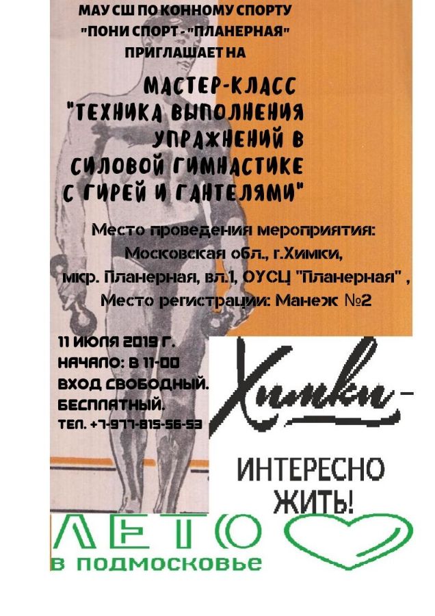 25 июля в рамках программы "Химки - интересно жить" наша спортивная школа в 11-00 часов приглашает всех ХИМЧАН, желающих посетить мастер-класс "Фитнес для начинающих". на котором мы разомнем все тело на интенсивной тренировке. Вход свободный. Бесплатный. Форма одежды - спортивная.