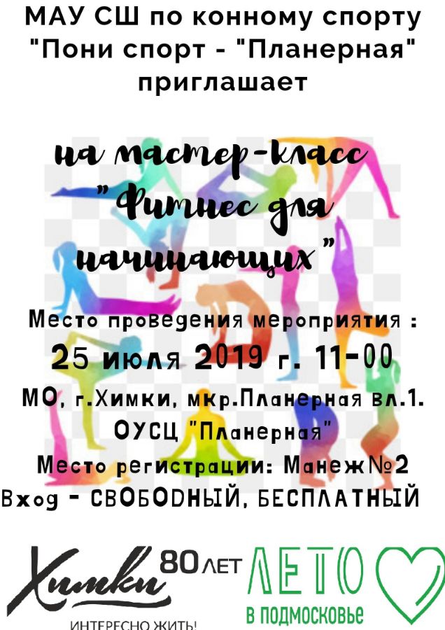 25 июля в 11-00 приглашаем всех ХИМЧАН, желающих посетить мастер-класс " Фитнес для начинающих". Вход свободный. Бесплатно.